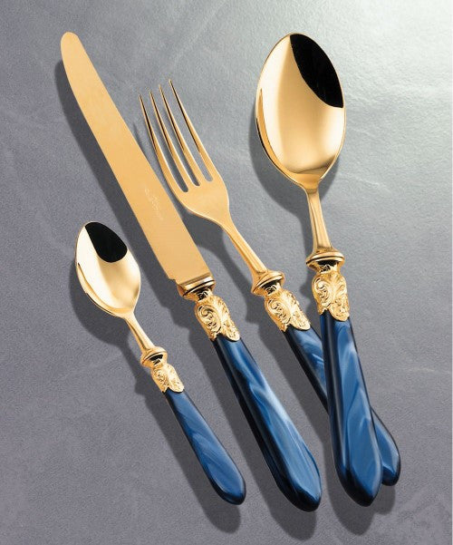 Colchique Gold Plate Flatware Collection with Gitane Blue Handles