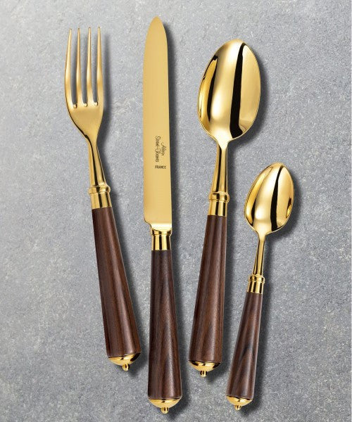 Julia Gold Plate Flatware Collection with Rosewood Handles