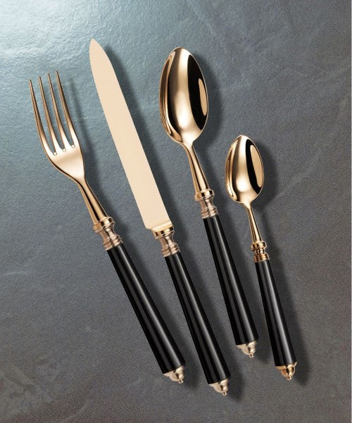 Séville Rose Gold Plate Flatware Collection with Black Handles