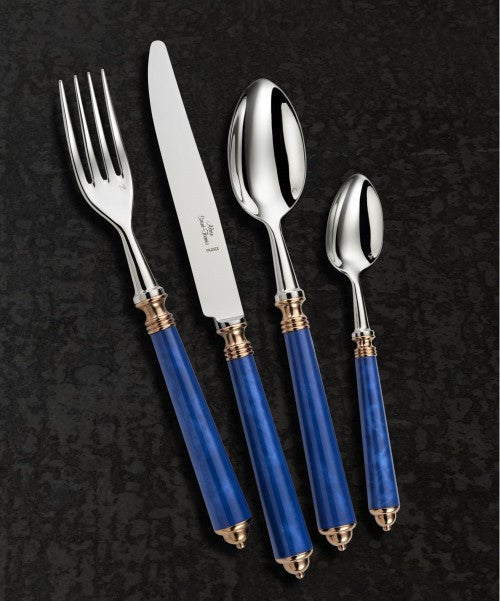 Séville Stainless Steel Flatware Collection with Blue Handles and Rose Gold Accent