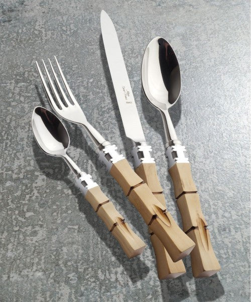 Whether you’re curating a formal tablescape or elevating everyday dining, Alain Saint-Joanis offers flatware collections in both silverplate and high-polish stainless steel. Each design blends classic European styling with contemporary refinement, featuring signature handles crafted from horn, resin, wood, or metal for a distinctive table presence.