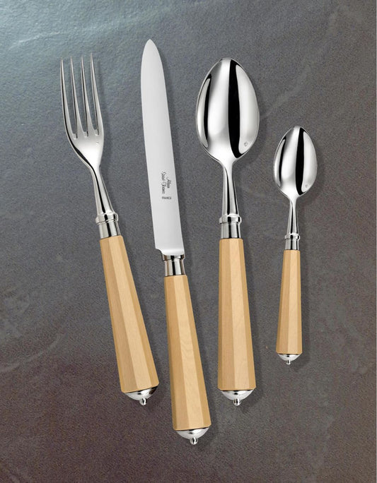 Whether you’re curating a formal tablescape or elevating everyday dining, Alain Saint-Joanis offers flatware collections in both silverplate and high-polish stainless steel. Each design blends classic European styling with contemporary refinement, featuring signature handles crafted from horn, resin, wood, or metal for a distinctive table presence.