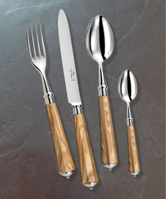Récamier Stainless Steel Flatware Collection with Wood Rio Handles