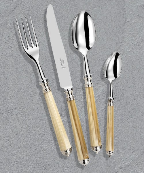 Marbella Stainless Steel Flatware Collection with Light Horn Handles