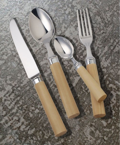 Sancy Stainless Steel Flatware Collection with Boxwood Handles