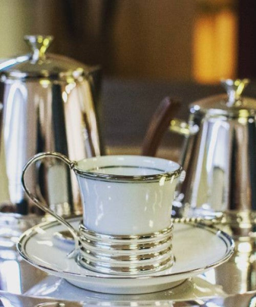 Double Wall Hot Beverage Tumbler with Silverplate Detail