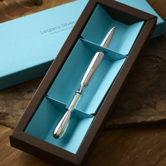 Open correspondence in style with our selection of sterling silver and silverplate letter openers, handmade in England and Europe. Featuring classic and contemporary handles, these openers are practical tools and cherished keepsakes, ideal for daily use or gifting.