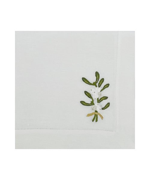 Mistletoe Bunch Hand-Embroidered Table Linens Collection