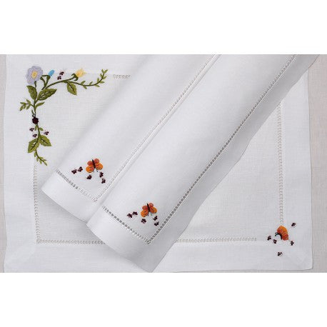 Scattered Flowers Hand-Embroidered Table Linens Collection