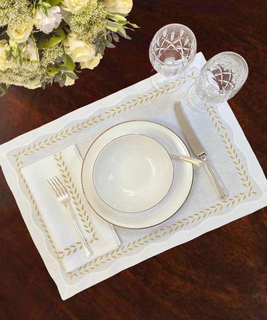 Thick Laurel Edge Hand-Embroidered Table Linens Collection