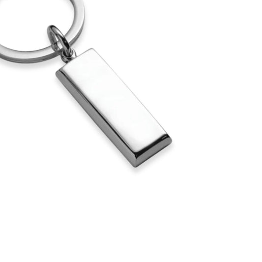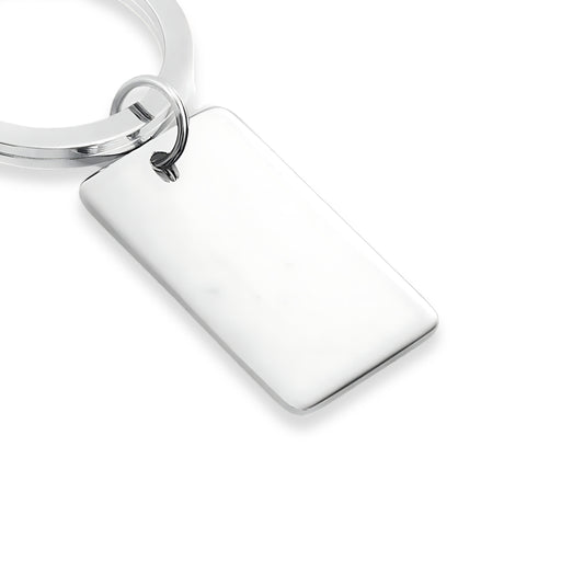We offer a variety of sterling silver keychains, handmade in the United States and England. All of our sterling silver key ring styles and key fobs can be personalized with your choice of free custom engraving. From classic engine-turned styles to more simplistic ovals and rectangular shapes, we offer a superb selection of personalized sterling silver keychain accessories, perfect for your needs — or as a thoughtful, custom gift. Shown is the Sterling Silver Rectangular Key Ring with Four Line Frame.
