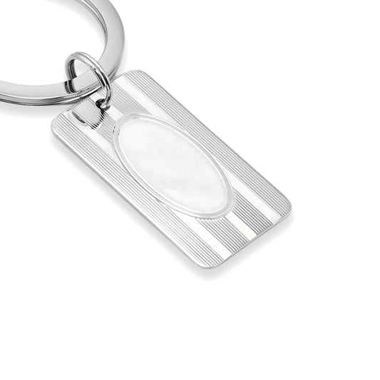 Sterling Silver Rectangular Key Ring with Oval Engine Turned Design