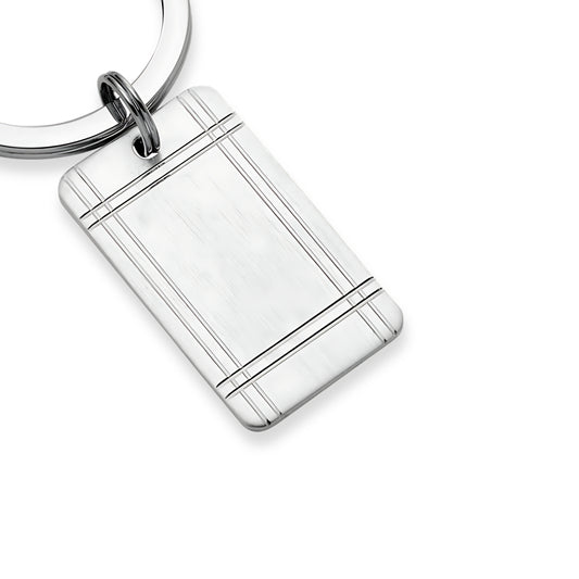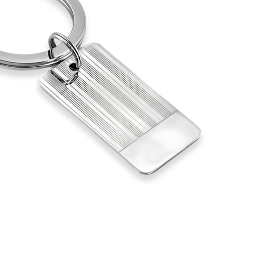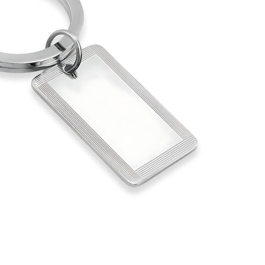 Sterling Silver Rectangular Key Ring with Four Line Frame