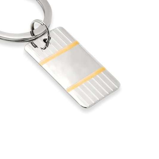 Sterling Silver and Gold Plate Rectangular Key Ring with Engine Turned Linear Design