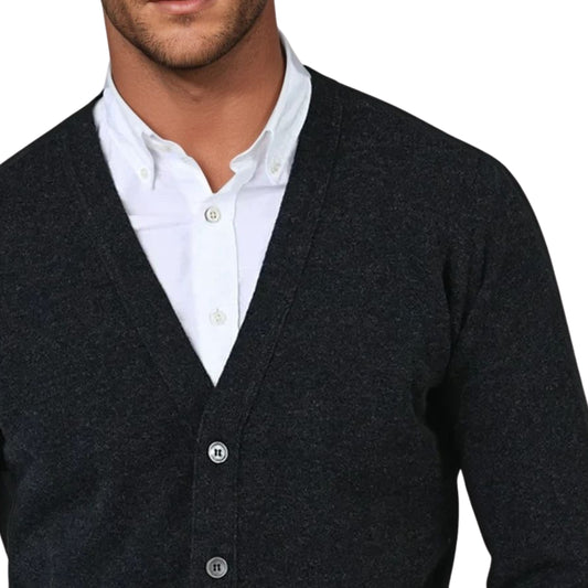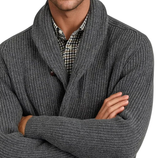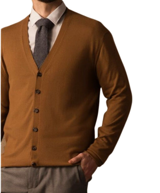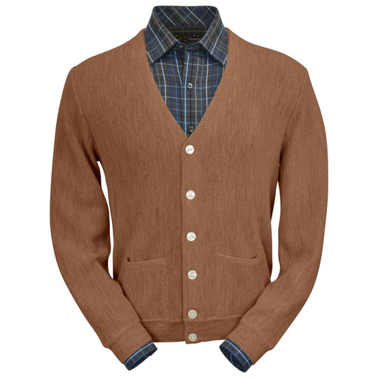 Classic men’s cardigan sweaters — crafted using premium materials and traditional methods. Our men'scashmere cardigan offerings include a classic version and shawl collar cardigan style. With a wide range of styles, colors, and sizes, our male cardigan offerings include a range of soft, durable materials. When warmth is paramount, reach for our men's camel hair cardigan sweater, which isoffered in two styles. For a soft, elegant touch, browse our alpaca cardigan styles blended with Merino wool... and when only the finest will do, try our 100% Vicuña cardigan. Shown is the Lambswool Cardigan With Saddle Shoulder and Two Pockets with a timeless men's Viyella sport shirt.