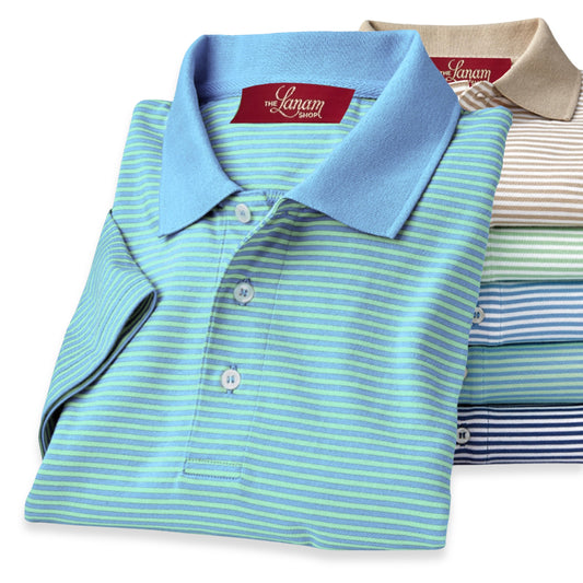 Enhance your wardrobe with the fine selection of men's short-sleeve Pima cotton shirts from The Lanam Shop. Our men's polo shirt and T-shirts are crafted from high-quality Pima cotton — a naturally softer and more breathable cotton variety from Peru. Whether worn by themselves or layered with a jacket or sweater, we offer a men’s short-sleeve Pima cotton shirt ideal for your needs. With a large selection of colors and styles, we have the Pima polos and tees your looking for to help round out your summer or vacation wardrobe.