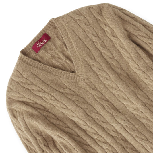 Camel Hair V-Neck Sweater with Saddle Shoulder
