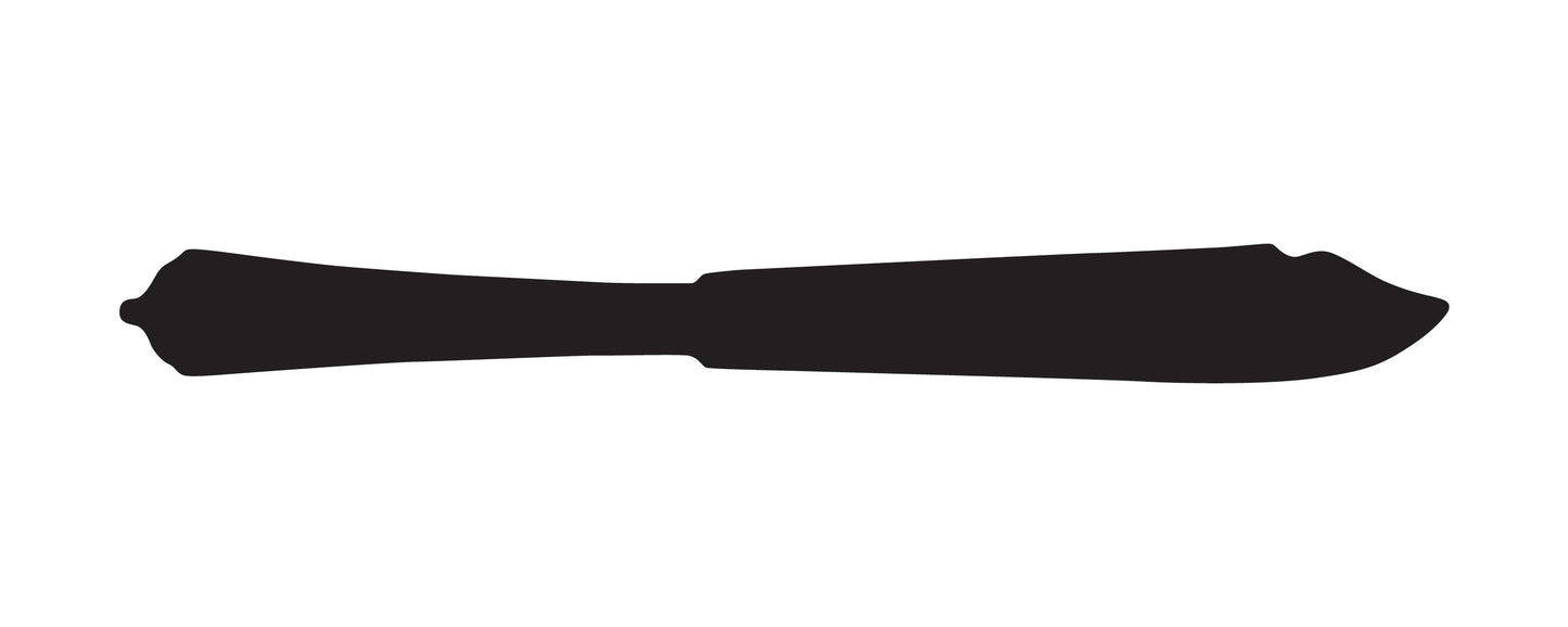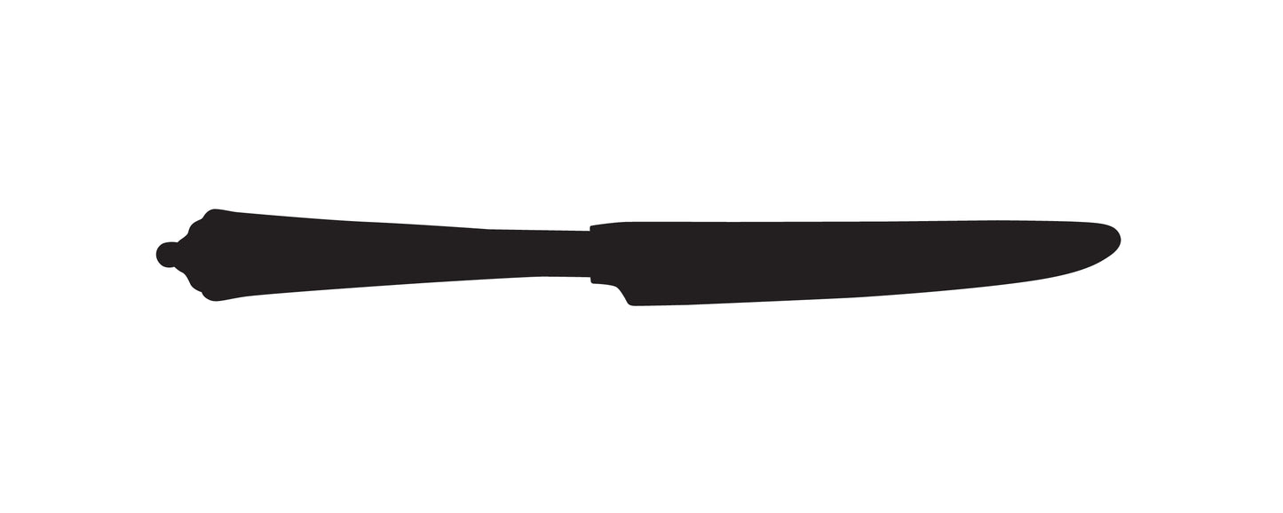 The cutlery silhouettes shown depict standard designs available in this pattern from Carrs. The serving silhouettes shown depict standard shapes, as a size reference. The handles will be crafted in the pattern of your selection.
