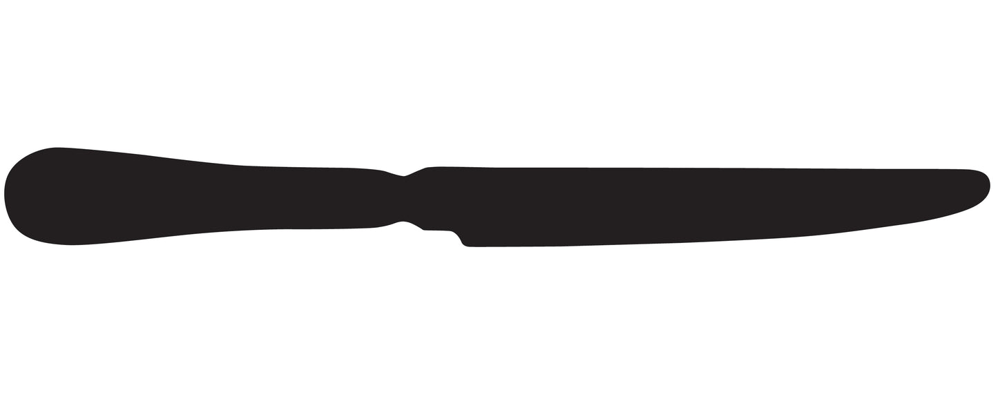 The cutlery silhouettes shown depict standard designs available in this pattern from Carrs. The serving silhouettes shown depict standard shapes, as a size reference. The handles will be crafted in the pattern of your selection.