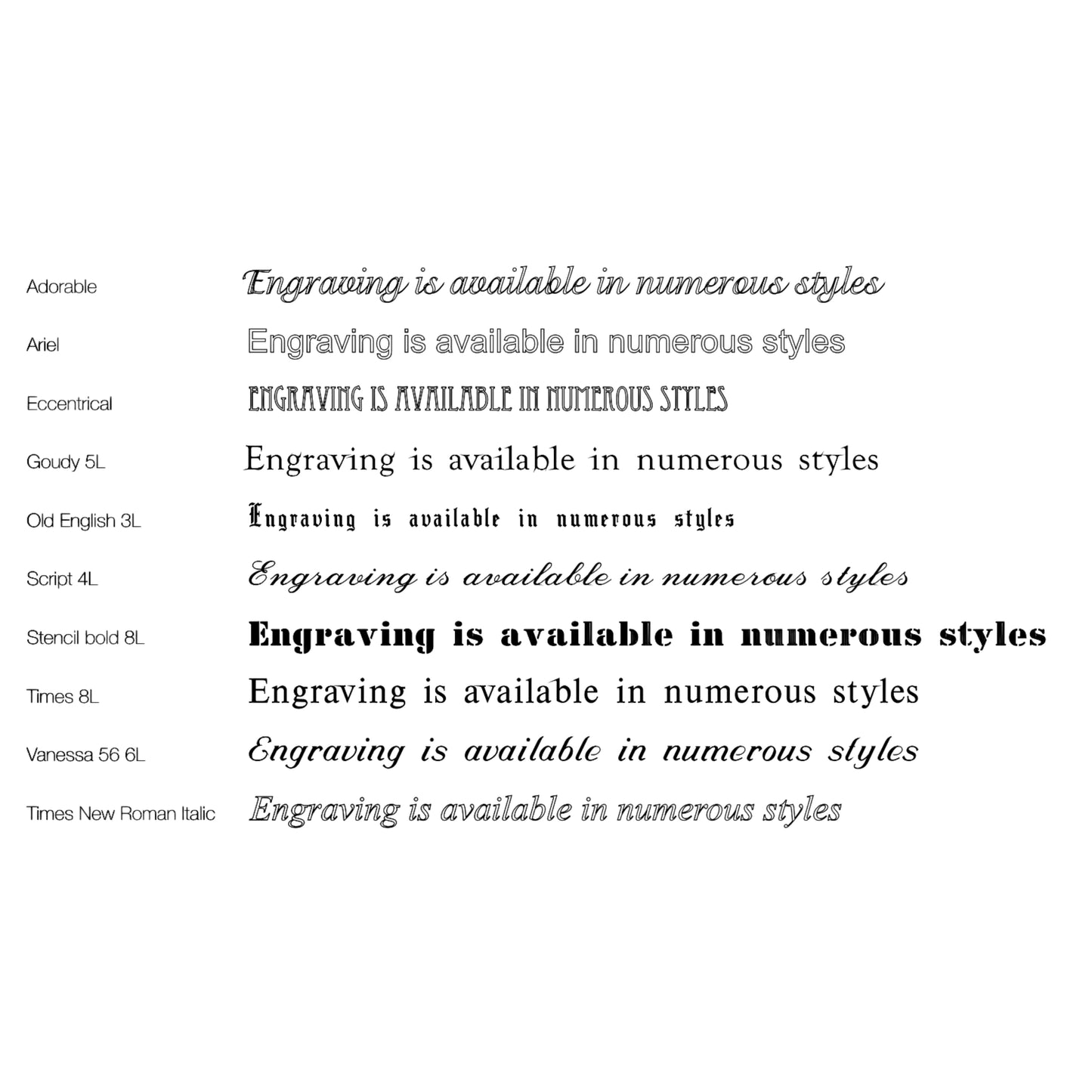 • Free engraving available