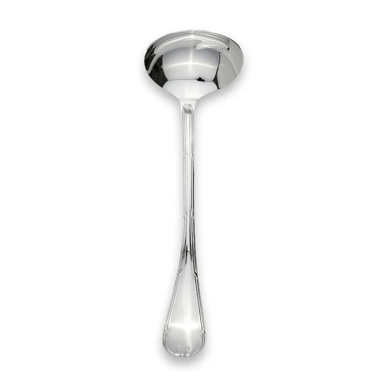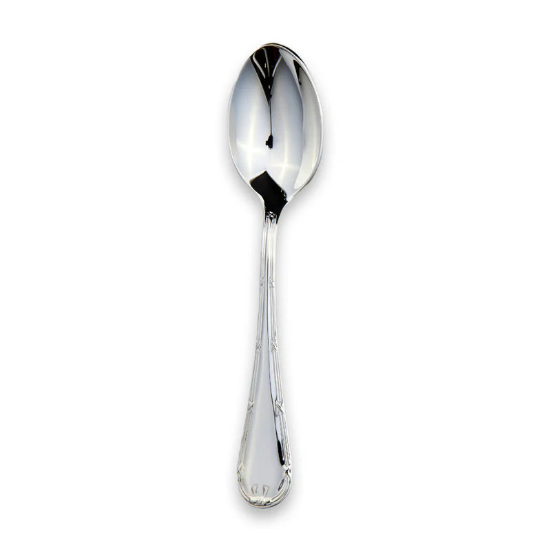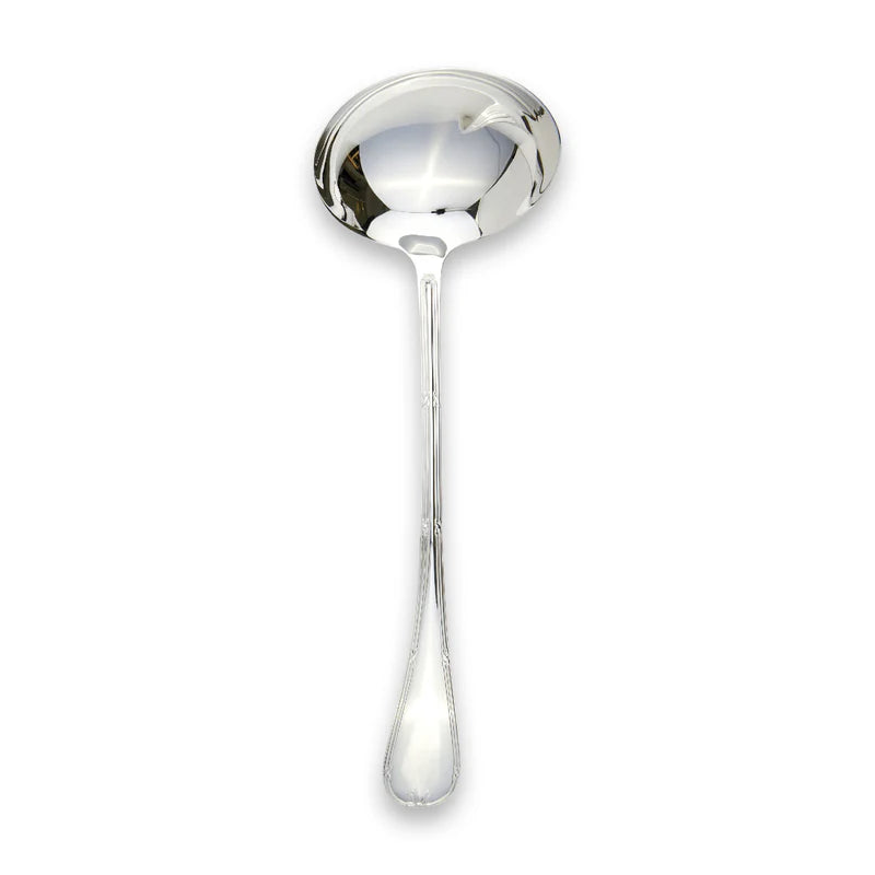 Elegant and classically inspired, the English Reed and Ribbon Pattern Sterling Silver Flatware by Carrs Silver evokes the grace of Georgian-era silver design. Distinguished by its refined linear border and delicately sculpted ribbon motif at the handle’s base, this pattern is ideal for those who appreciate understated luxury and historical craftsmanship.