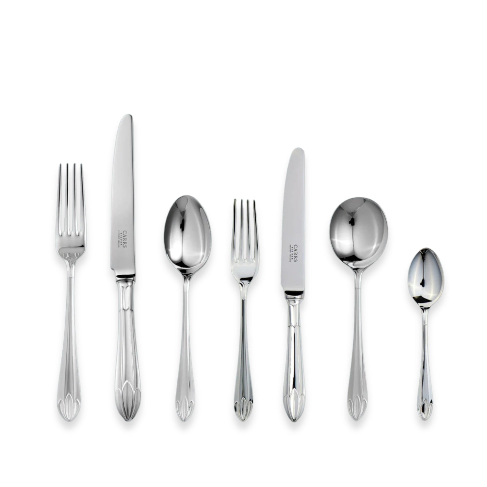 Bring a sense of harmony and timeless sophistication to your table with Carrs Lotus sterling silver flatware — where nature-inspired artistry meets traditional British luxury.