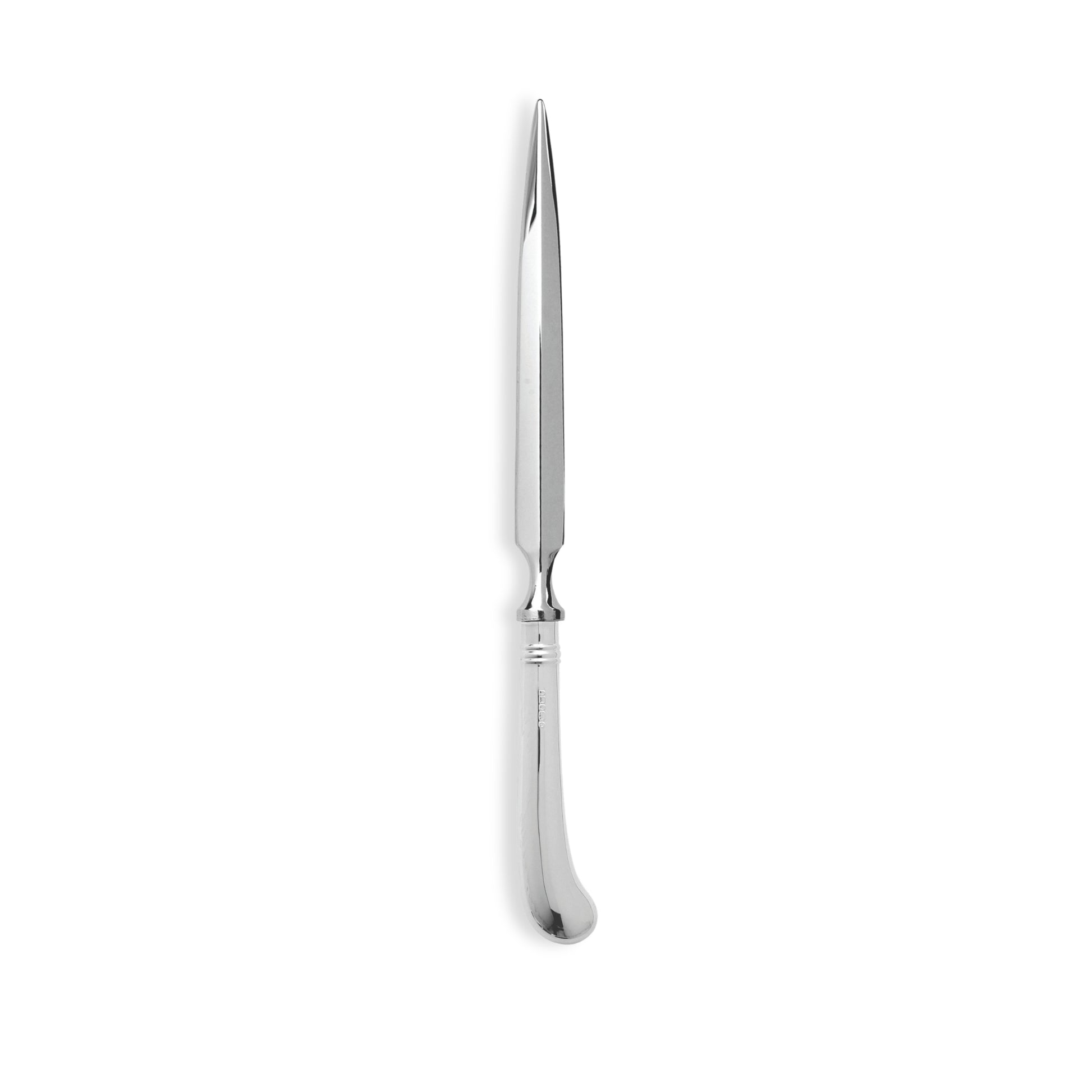 Made from solid sterling silver, the handle is mirror-polished and fully hallmarked by the Sheffield Assay Office, confirming its authenticity and quality. The paper knife is fitted with a precision stainless steel blade, ideal for opening letters and envelopes with ease and style.