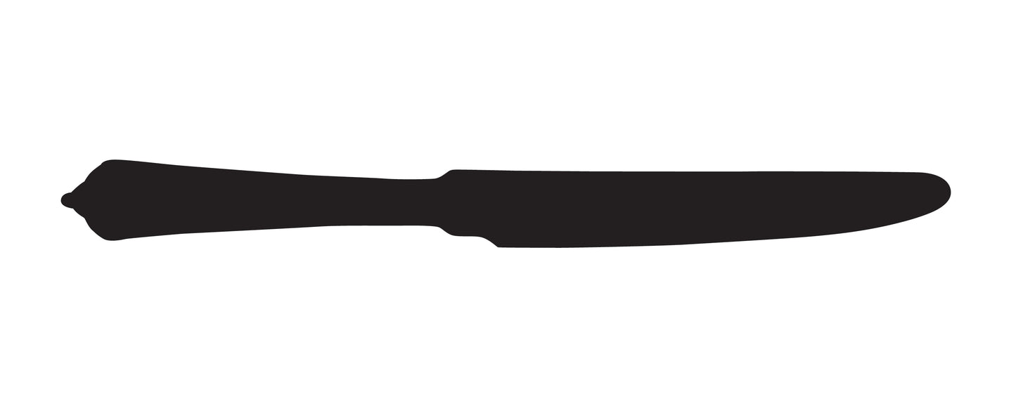 The cutlery silhouettes shown depict standard designs available in this pattern from Carrs. The serving silhouettes shown depict standard shapes, as a size reference. The handles will be crafted in the pattern of your selection.