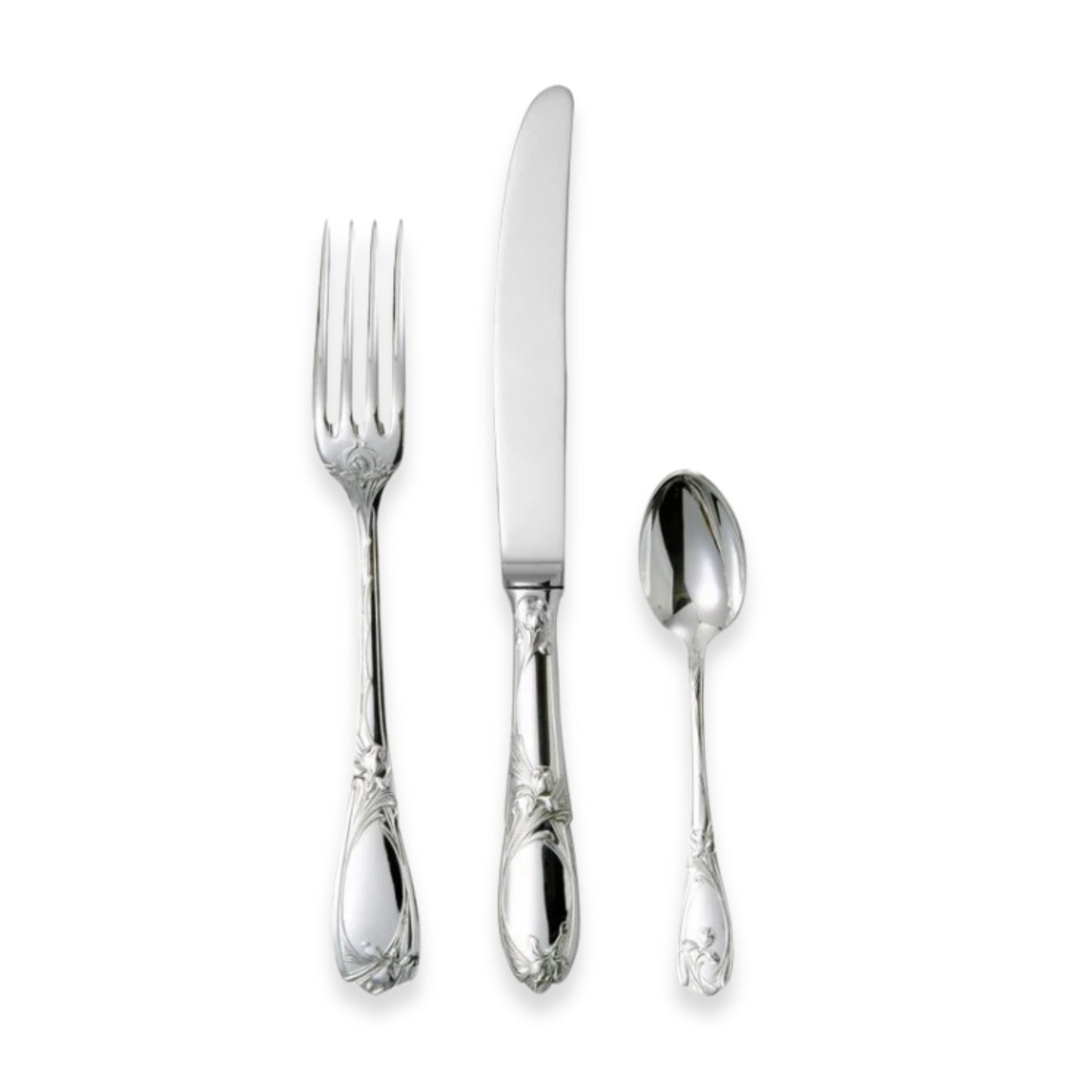 Browse the full range of available Chambly silverplate flatware patterns and also the selection of Chambly stainless steel flatware styles. For the finest tables, please browse our selection of made-to-order Chambly gold plate flatware. A collection of coordinating Chambly silver plate holloware is available on request. Hand-crafted in France.