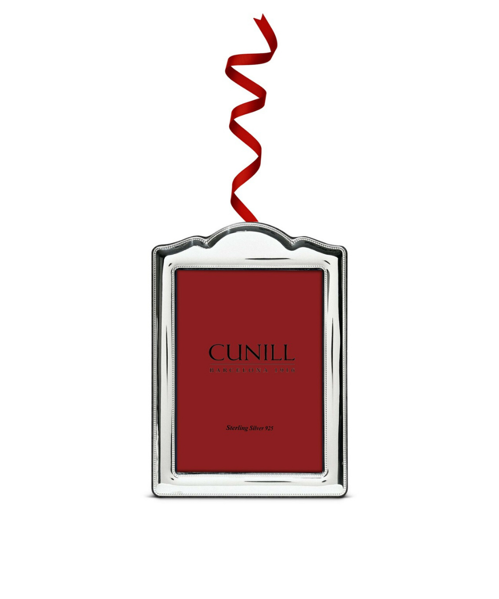 Crafted in Italy using sterling silver, the Cunill arched-top sterling silver ornament frame comes with two backs—one that allows it to be used as a hanging tree ornament during the holidays and a second with a traditional easel back, allowing it to be a desk or nightstand frame year-round. Finished with a solid wood back. Complimentary engraving available.