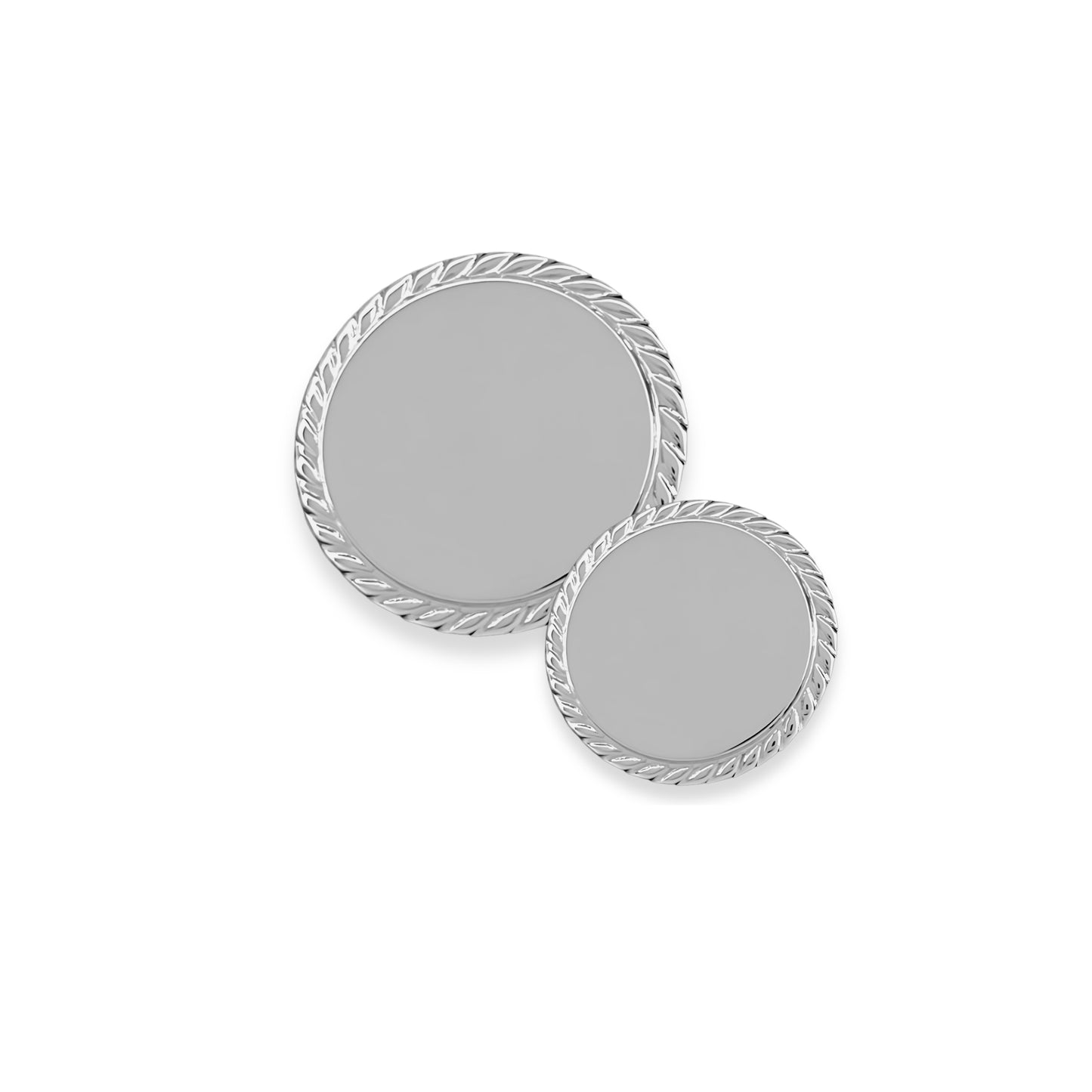 Our sterling silver blazer buttons with rope edge are made in the United States. Crafted of mirror-polished 925 silver, these sterling blazer buttons can be engraved. They are priced per button.