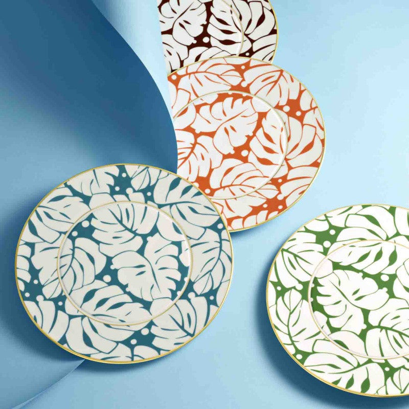 COLORÉE uses its chosen colours to invoke the pleasures of southern German landscape. Peter Kempe’s decor arouse feelings of pure joie de vivre and sensuality with his strikingly colourful philodendron leaves reminiscent of the jungle and the Caribbean. Lagoon blue set against absinthe, orange combined with a warm chestnut – colour blockings are an invitation for creative combinations.