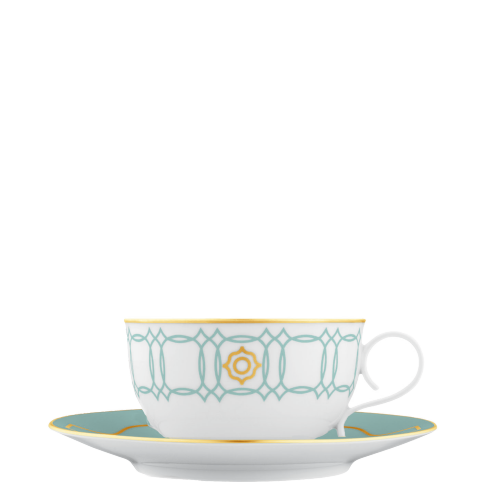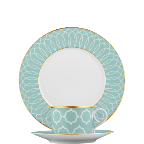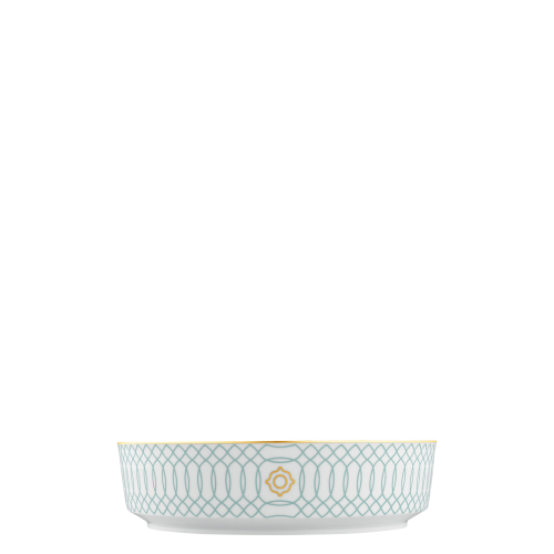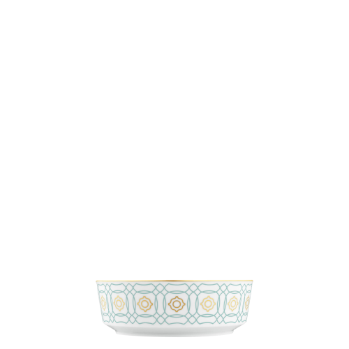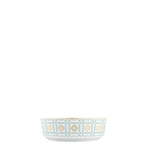 Artistic and noble is the impression of decor ESTE. The look is created by luxurious shades of gold combined with discreet green hues and the unique effect of the orna-ments: On a table laid, the porcelain pattern reminds of artistic mosaics, where the frail porcelain pieces elegantly blend in with the contemporary life style.
