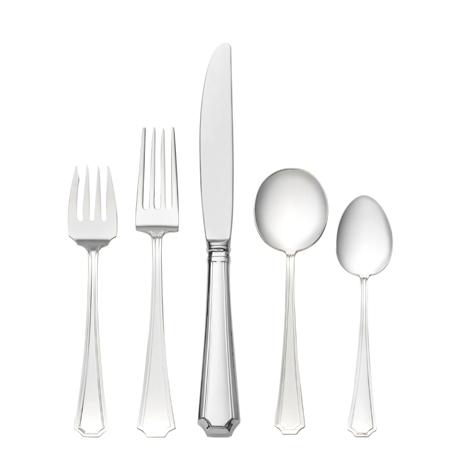 The Fairfax by Gorham Sterling Flatware collection features a refined Art Deco design, combining clean lines with subtle elegance. Crafted from premium sterling silver, this heirloom-quality set adds timeless sophistication to any table, making it perfect for both formal events and everyday dining.
