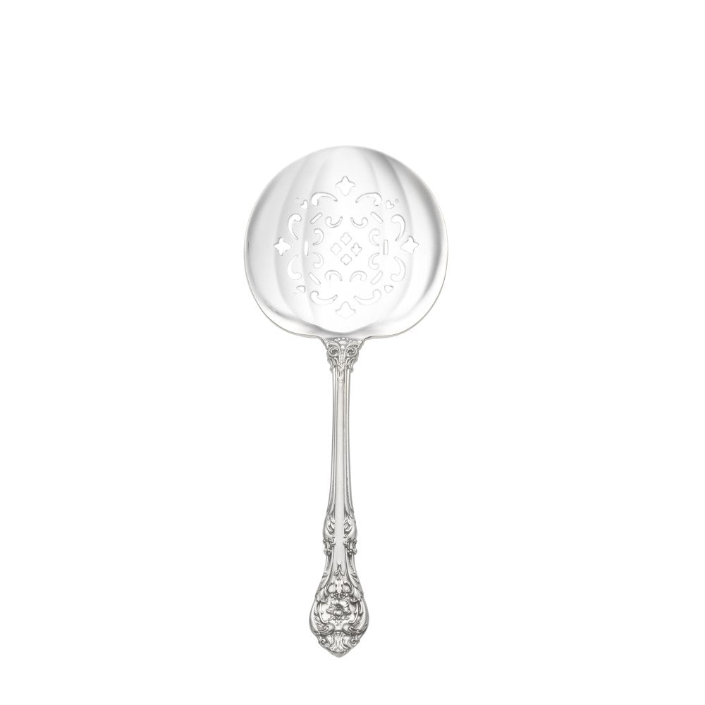 Hollow handle is a term used to describe a standard method of flatware construction. These pieces have a sterling silver handle with an interior portion where a shafted piece is cemented secure — most knives and some large serving pieces use this construction method. Typically, the upper portion of the piece is made using 18/10 stainless steel or hardened steel if it is a knife blade.