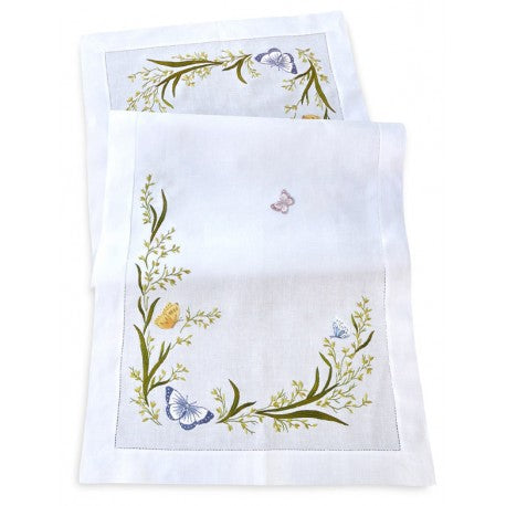 ERI Textiles Green Meadow Hand-Embroidered Table Linens Collection