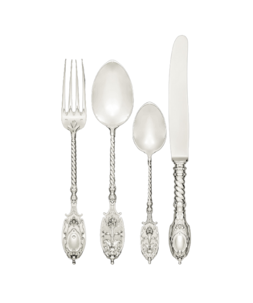 With a plethora of high-profile commissions, the work of Jarosinski & Vaugoin can be found in palaces, embassies, yachts, private jets, and prestigious private residences. Eager to accommodate requests, Vaugoin can customize and personize most items to your desired specifications. Kindly contact us to obtain size and shape specifications for individual pieces. All patterns can be produced with gold plating. There are over two hundred active patterns, each with more than 150 cutlery and serving pieces— simply unmatched by any other silver studio.