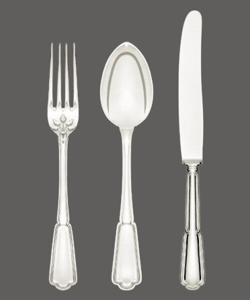With a plethora of high-profile commissions, the work of Jarosinski & Vaugoin can be found in palaces, embassies, yachts, private jets, and prestigious private residences. Eager to accommodate requests, Vaugoin can customize and personize most items to your desired specifications. Kindly contact us to obtain size and shape specifications for individual pieces. All patterns can be produced with gold plating. There are over two hundred active patterns, each with more than 150 cutlery and serving pieces— simply unmatched by any other silver studio.