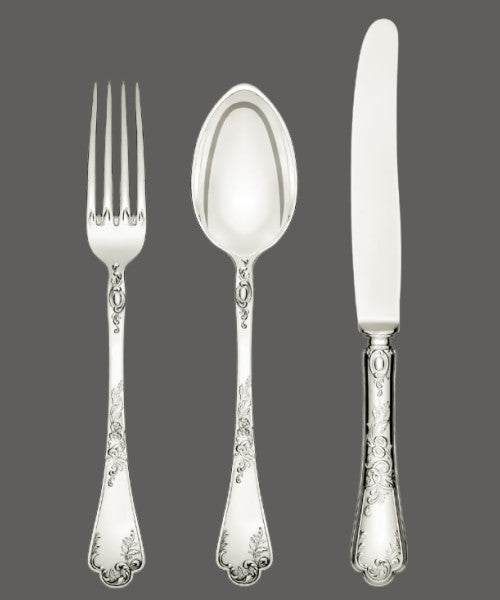 With a plethora of high-profile commissions, the work of Jarosinski & Vaugoin can be found in palaces, embassies, yachts, private jets, and prestigious private residences. Eager to accommodate requests, Vaugoin can customize and personize most items to your desired specifications. Kindly contact us to obtain size and shape specifications for individual pieces. All patterns can be produced with gold plating. There are over two hundred active patterns, each with more than 150 cutlery and serving pieces— simply unmatched by any other silver studio.