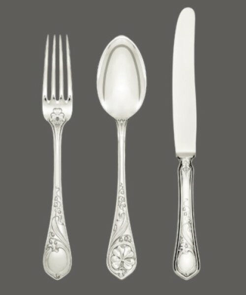 With a plethora of high-profile commissions, the work of Jarosinski & Vaugoin can be found in palaces, embassies, yachts, private jets, and prestigious private residences. Eager to accommodate requests, Vaugoin can customize and personize most items to your desired specifications. Kindly contact us to obtain size and shape specifications for individual pieces. All patterns can be produced with gold plating. There are over two hundred active patterns, each with more than 150 cutlery and serving pieces— simply unmatched by any other silver studio.