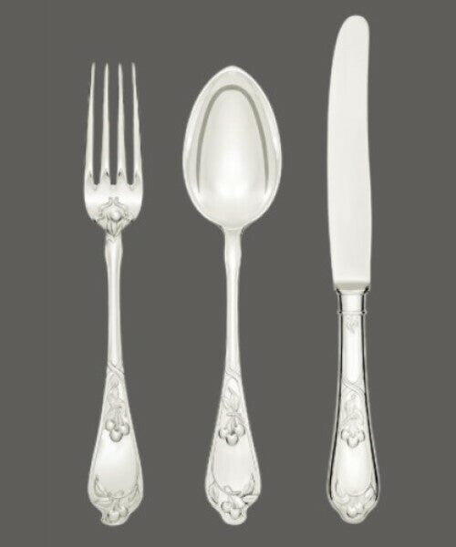 With a plethora of high-profile commissions, the work of Jarosinski & Vaugoin can be found in palaces, embassies, yachts, private jets, and prestigious private residences. Eager to accommodate requests, Vaugoin can customize and personize most items to your desired specifications. Kindly contact us to obtain size and shape specifications for individual pieces. All patterns can be produced with gold plating. There are over two hundred active patterns, each with more than 150 cutlery and serving pieces— simply unmatched by any other silver studio.
