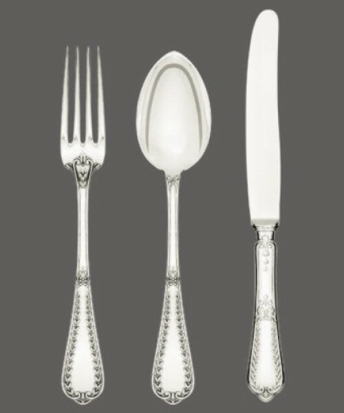 With a plethora of high-profile commissions, the work of Jarosinski & Vaugoin can be found in palaces, embassies, yachts, private jets, and prestigious private residences. Eager to accommodate requests, Vaugoin can customize and personize most items to your desired specifications. Kindly contact us to obtain size and shape specifications for individual pieces. All patterns can be produced with gold plating. There are over two hundred active patterns, each with more than 150 cutlery and serving pieces— simply unmatched by any other silver studio.