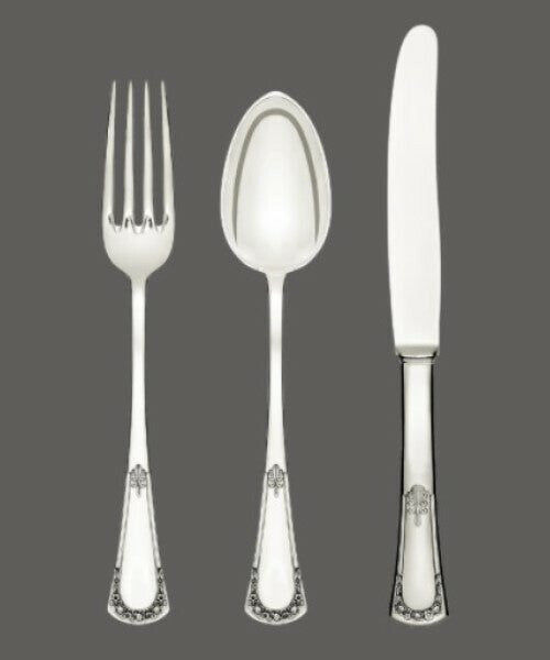 With a plethora of high-profile commissions, the work of Jarosinski & Vaugoin can be found in palaces, embassies, yachts, private jets, and prestigious private residences. Eager to accommodate requests, Vaugoin can customize and personize most items to your desired specifications. Kindly contact us to obtain size and shape specifications for individual pieces. All patterns can be produced with gold plating. There are over two hundred active patterns, each with more than 150 cutlery and serving pieces— simply unmatched by any other silver studio.