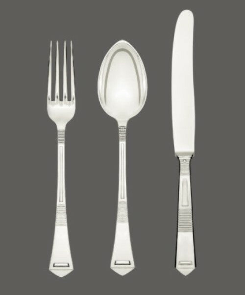 With a plethora of high-profile commissions, the work of Jarosinski & Vaugoin can be found in palaces, embassies, yachts, private jets, and prestigious private residences. Eager to accommodate requests, Vaugoin can customize and personize most items to your desired specifications. Kindly contact us to obtain size and shape specifications for individual pieces. All patterns can be produced with gold plating. There are over two hundred active patterns, each with more than 150 cutlery and serving pieces— simply unmatched by any other silver studio.