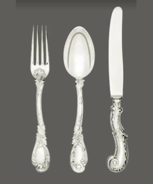With a plethora of high-profile commissions, the work of Jarosinski & Vaugoin can be found in palaces, embassies, yachts, private jets, and prestigious private residences. Eager to accommodate requests, Vaugoin can customize and personize most items to your desired specifications. Kindly contact us to obtain size and shape specifications for individual pieces. All patterns can be produced with gold plating. There are over two hundred active patterns, each with more than 150 cutlery and serving pieces— simply unmatched by any other silver studio.