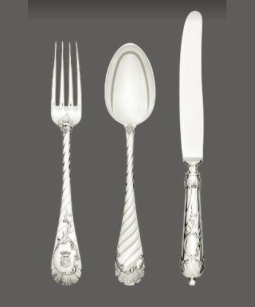 With a plethora of high-profile commissions, the work of Jarosinski & Vaugoin can be found in palaces, embassies, yachts, private jets, and prestigious private residences. Eager to accommodate requests, Vaugoin can customize and personize most items to your desired specifications. Kindly contact us to obtain size and shape specifications for individual pieces. All patterns can be produced with gold plating. There are over two hundred active patterns, each with more than 150 cutlery and serving pieces— simply unmatched by any other silver studio.