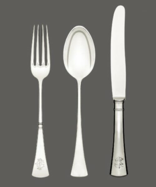 With a plethora of high-profile commissions, the work of Jarosinski & Vaugoin can be found in palaces, embassies, yachts, private jets, and prestigious private residences. Eager to accommodate requests, Vaugoin can customize and personize most items to your desired specifications. Kindly contact us to obtain size and shape specifications for individual pieces. All patterns can be produced with gold plating. There are over two hundred active patterns, each with more than 150 cutlery and serving pieces— simply unmatched by any other silver studio.
