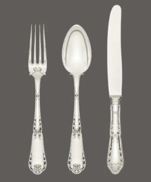 With a plethora of high-profile commissions, the work of Jarosinski & Vaugoin can be found in palaces, embassies, yachts, private jets, and prestigious private residences. Eager to accommodate requests, Vaugoin can customize and personize most items to your desired specifications. Kindly contact us to obtain size and shape specifications for individual pieces. All patterns can be produced with gold plating. There are over two hundred active patterns, each with more than 150 cutlery and serving pieces— simply unmatched by any other silver studio.
