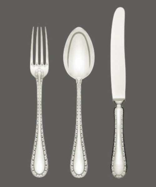 With a plethora of high-profile commissions, the work of Jarosinski & Vaugoin can be found in palaces, embassies, yachts, private jets, and prestigious private residences. Eager to accommodate requests, Vaugoin can customize and personize most items to your desired specifications. Kindly contact us to obtain size and shape specifications for individual pieces. All patterns can be produced with gold plating. There are over two hundred active patterns, each with more than 150 cutlery and serving pieces— simply unmatched by any other silver studio.