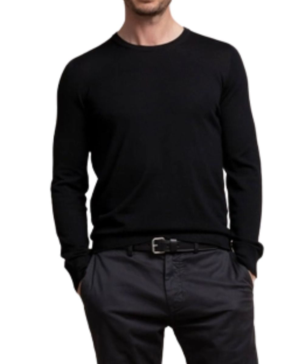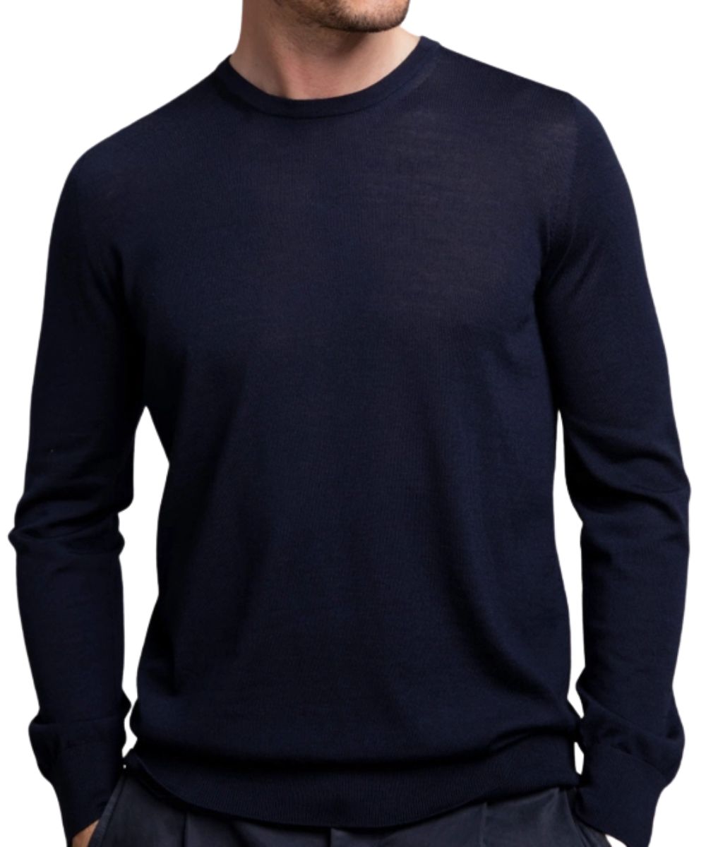 We are delighted to present this superfine-gauge men’s Merino wool crew neck sweater from Royal Warrant holder, Johnstons of Elgin. Known for their sustainable supply chain, Johnstons of Elgin controls every stage of sweater production—from wool to final stitch. With exacting standards and rigorous quality control measures, Johnstons has honed skills over generations, resulting in some of the finest knitwear in production. Johnstons sources their Merino wool from free-range flocks of legacy Merino sheep, in southern Australia. Soft wool from their innermost coat is dyed, blended, and spun in Scotland. Individual trim pieces are knitted separately and transferred to the main knitting frame by hand. This men's Merino crew neck sweater is washed in the soft waters of The River Teviot, creating a soft touch that will last a lifetime. All Johnstons Superfine Merino sweater are suitable for layering, but elegant enough to be worn on their own. Comfortable enough for year-round warmth and breathability. A shaped shoulder, set-in sleeve, ribbed cuff and waist detailing enhance the comfort and wearability of this sweater. Handmade in Scotland, from ethically sourced materials.